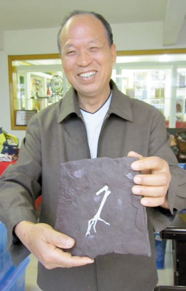 张显球展示经修整后的张氏三水鸟化石复制模型