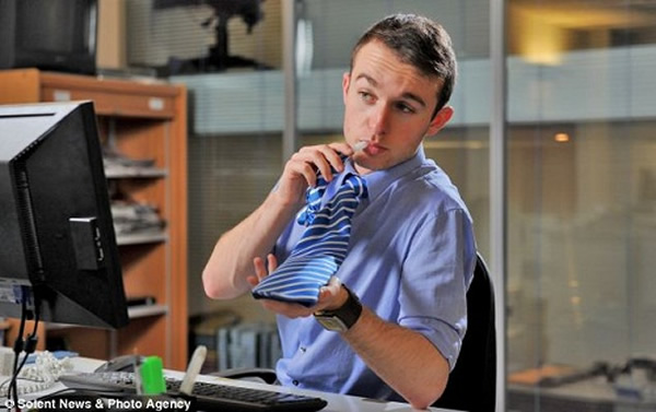 戴着“酒瓶领带”的上班族可以一边工作一边喝酒,还不用担心会被上司发现