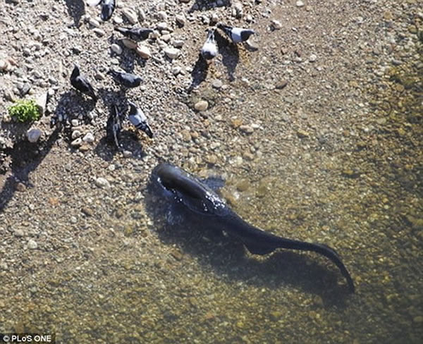 据英国每日邮报报道,目前,法国西南部塔姆河中鲶鱼能够成为“离水之鱼”,跃出水面到岸边捕食鸽子。