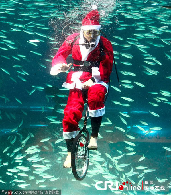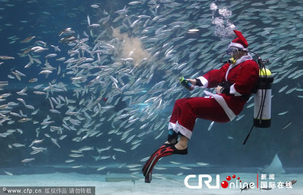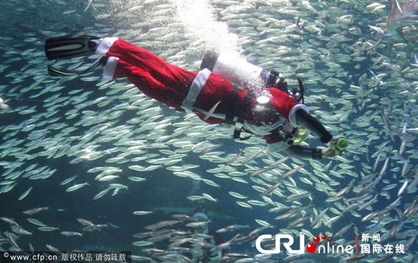 韩国潜水员打扮成圣诞老人在水族箱中同鱼儿共舞 来源: 神秘的地球 时间:2012年12月09日 10:03 韩国潜水员打扮成圣诞老人在水族箱中同鱼儿共舞 韩国潜水员打扮成圣诞老人在水族箱中同鱼儿共舞 韩国潜水员打扮成圣诞老人在水族箱中同鱼儿共舞 当地时间2012年12月8日,韩国首尔,韩国潜水员身着圣诞老人的服装,在水族箱中同鱼儿共舞。 上一篇 下一篇 TAG: 韩国 圣诞老人