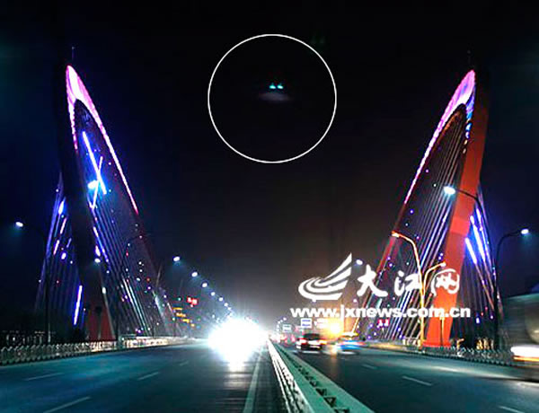 昨晚8时许,来自江西科技学院的摄影爱好者曾宏和赵伟也向本报报料,12月6日在艾溪湖大桥拍照的时候无意间用单反相机拍到了“不明飞行物”。曾宏向记者传来了他当晚拍下的照片。记者看到,这个“飞行物”,两只闪亮的“眼睛”,连着一个椭圆形的“身子”,“样子看起来真的就像大家传言的U-FO”。