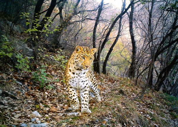 A leopard seems to strike a regal pose in China in the winning photograph of the annual BBC Wildlife Camera Trap Competition.