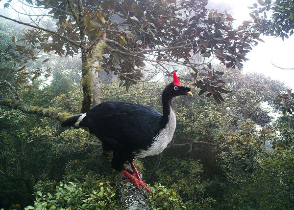A horned guan perches on a tree in Guatemala in an image that won runner-up in the Animal Portraits category.