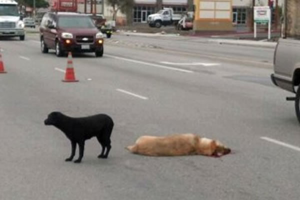 加利福尼一只黑色拉布拉多犬在车流中阻挡着车辆,以保护着它的同伴--一只黄色拉布拉多犬,最后它还是被一辆摩托车撞倒了。幸好有一个过路人在这放置了一个交通标志才得以保护这两只可怜的小狗。这只忠诚的小狗没有狗牌,于是公园工作人员给它取了一个叫做“高尚”的名字。