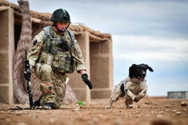 西奥,一只混血史宾格犬,跟随皇家兽医部队一等兵塔斯克在阿富汗服役了5个月,负责寻找汽车炸弹。2011年3月,塔斯克在阿富与叛乱分子的交火中丧生,据称他的爱犬西奥也随之战死,2012年10月,西奥被追授迪金勋章,该勋章专门颁给二战以来立下战功的动物英雄们。