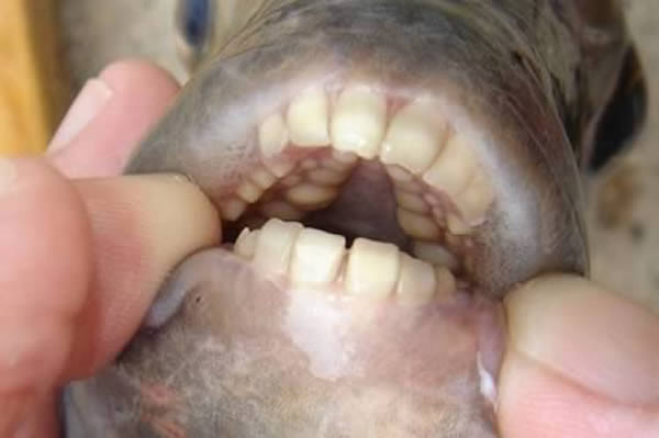 羊头鱼是生活在北美洲水域的一种普通鱼类,经常会攻击当地渔民。许多人并未意识到它们长着非常奇特的牙齿结构,这种牙齿非常像人类的牙齿,同时,在嘴部顶端也长有一排牙齿。