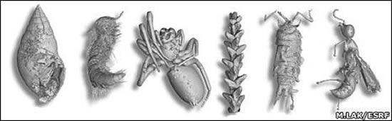 研究中,塔弗罗和同事玛尔维娜·拉克将数公斤重的不透明琥珀置于超级光束的必经之路上,并最终发现了无主珍宝——大量古代生物。在600多块被扫描的琥珀中,他们确定了近360种已成化石的昆虫,包括黄蜂、苍蝇、蚂蚁甚至蜘蛛。此外,他们还发现一些植物物质的小碎片。很明显,所有这些昆虫都是被一些史前树的树脂捕获,在利用现代科技手段发现它们的踪影前,任何人都不知道它们已长眠于琥珀之中。