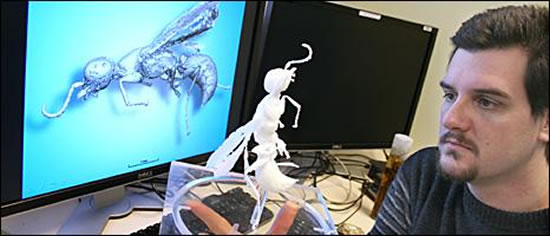 处理后得到的虚拟昆虫可以在电脑屏幕上旋转,它们拥有纳米(百万分之一米)尺度解析度,因此可获得理想的解剖细节。然而,事情并没有就此打住。所有这些电子信息都被输入一个3D塑料打印机,打印史前昆虫的实体模型。在打印机帮助下,一只被树脂捕获身长不到1毫米的昆虫,最后成为一个30厘米长可以拿在手上的复制品。
