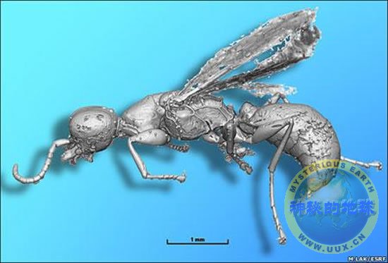 研究中使用的所有琥珀都是在位于法国西南部的夏朗德区发现的。琥珀中的绝大多数生物都是“小不点”。例如,其中一个螨类动物身宽只有0.8毫米,一只已成化石的黄蜂个头相对较大,但它的身长也不过4毫米。就职于雷恩大学的拉克解释说:“这些古生物的小个头可能源于一种现实——身体较大的动物可以在被树脂捕获前逃离升天,而较小的动物自然更容易遭遇不幸。”