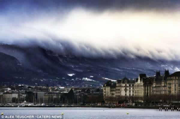 瑞士小城山顶的云团犹如世界末日景象