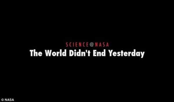 美国宇航局对12月21日不会发生世界末日深信不疑,他们甚至提前10天推出了一段名为《昨天为什么不是世界末日(Why the World Didn't End Yesterday)》的视频。
