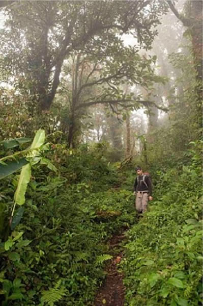 研究生格雷格-哥德斯密斯在哥斯达黎加的云雾森林自然保护区中做调查