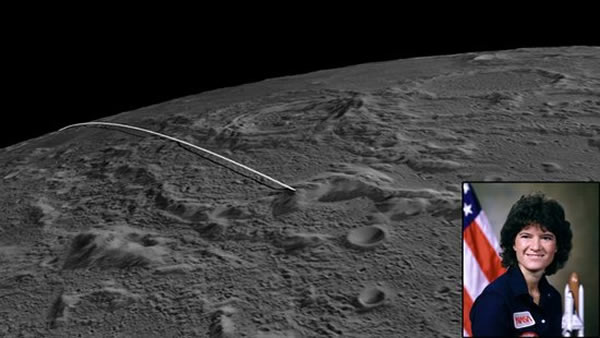 两颗引力探测器撞击在月球北极地区的一座山脉上。该撞击点以第一位进入太空的美国女宇航员萨莉·莱德(Sally Ride)的名字命名。