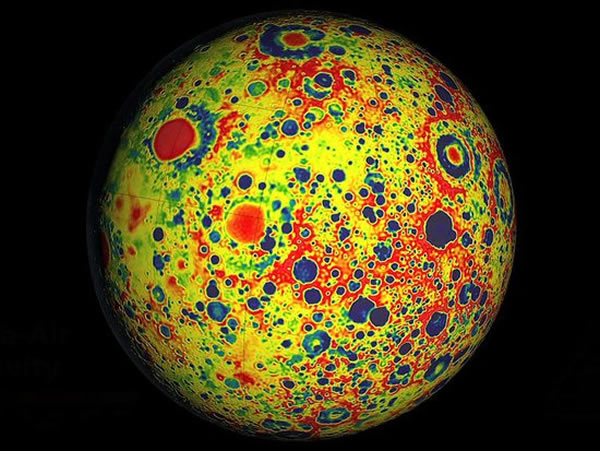 在任务期间,探测器绘制的月球表面引力场分布图。