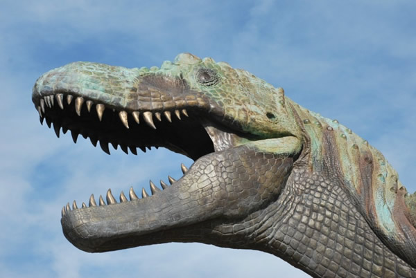 This life-size Albertosaurus, sculpted by David A. Thomas, greets visitors to the New Mexico Museum of Natural History and Science. Photo by the author.