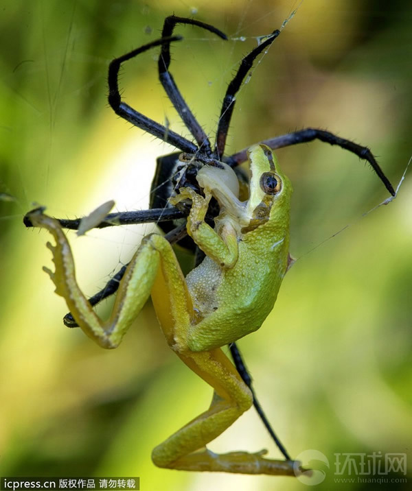 蜘蛛绝杀树蛙 来源: 神秘的地球 时间:2012年12月23日 14:21 蜘蛛绝杀树蛙 当地时间2012年8月12日,美国俄勒冈州Roseburg,蜘蛛与树蛙正在灌木丛中激战,这只聪明的蜘蛛巧妙的用自己的蜘蛛网和酸性唾液绝杀对手。 上一篇 下一篇 TAG: 树蛙 蜘蛛