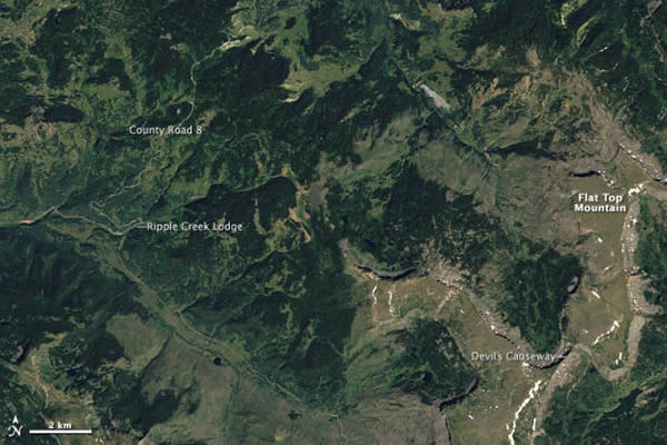 美国国家航空航天局地球观测站(NASA's Earth Observatory)今日公布了一张卫星照片,展示了日本九州岛阿苏火山口(Aso Caldera)的景象。
