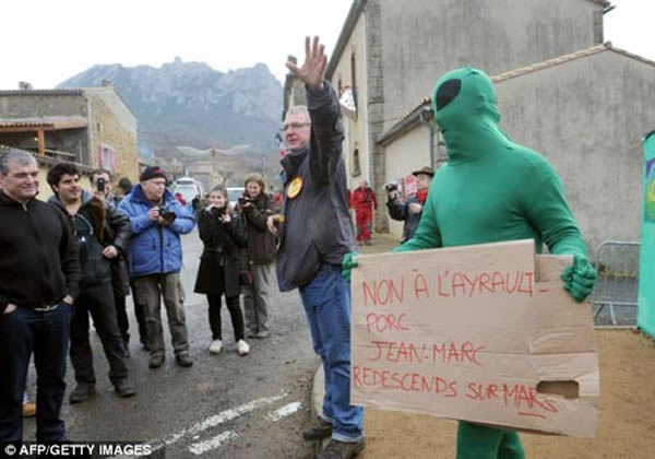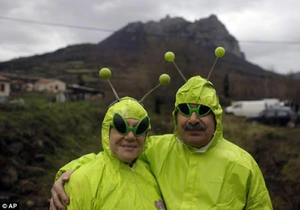 当地时间21日,全世界许多地方的人们都在见证2012年12月21日上午11时11分的到来,因为这个时间是古代玛雅文明所创纪年的终结时刻。当天在法国西南部的小城比加拉什(Bugarach),一些人爬上当地的一座山峰顶峰,这些人相信世界末日来临时比加拉什是全世界唯一的避难所,而他们爬上山顶则可以等待外星人前来搭救他们。
