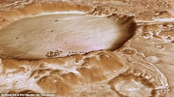 布满冰霜的火山口带来一种冬天的感觉,似乎圣诞节也来到了这颗红色的行星上。