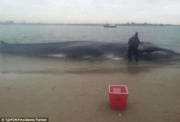怀孕巨鲸在美国纽约市附近海岸搁浅