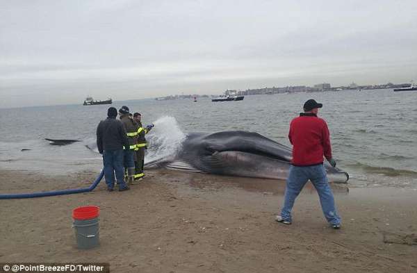 据英国《每日邮报》12月26日报道,当地时间26日,一只巨鲸在纽约市附近的海岸搁浅。当地消防队员和援救工作者往鲸鱼身上泼水希望它存活,然而相关专家赶到现场后称,最好让鲸鱼自然死亡。