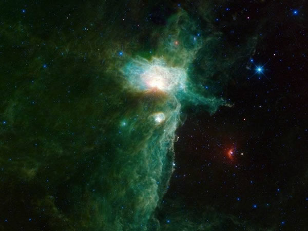 该天体坐落在猎户座后方偏东的天区中,如果你处于北半球的晚上,就很容易看到它。来自美国宇航局的广域红外空间望远镜拍摄到了这幅漂亮的景象,是一个巨大的气体云。天文学家正对该气体云中最亮的部分进行研究。