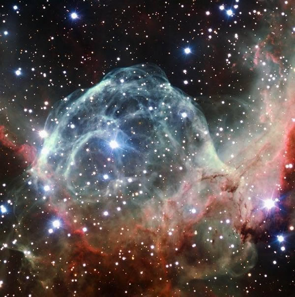 在欧洲南方天文台50周年之际,科学家们观测到一个酷似“雷神头盔”的超级宇宙泡沫,其距离地球大约15000光年,跨度超过了30光年。