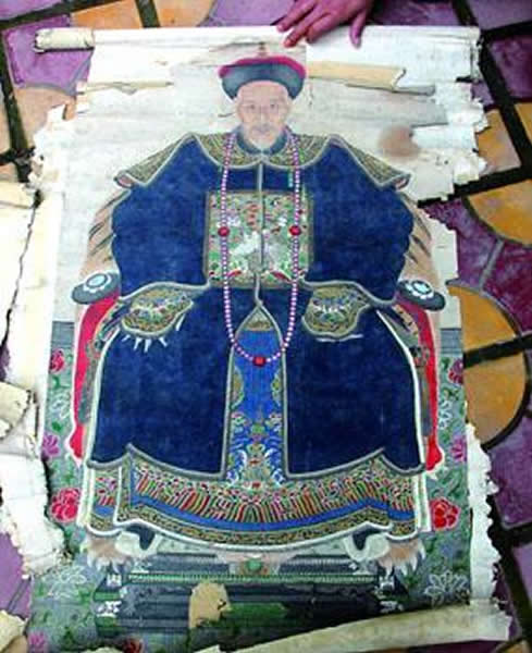垫江县文管所工作人员王泽建告诉记者,文管所的工作人员也专门赶到现场进行了查看,棺长220厘米,宽57厘米(大),宽50厘米(小),厚16厘米。棺材盖有印记。文管所工作人员猜测,这印记应该是棺材生产厂家的厂名和商标。棺材内部确实如董启洪所说,尸骨和官服保存完好,官服的图案很清晰。董家族的人当时提供了一张保存下来的董储的画像。通过尸骨头颅和画像的比较以及官服图案,文管所确定这个古墓就是清代知府董储,另外一个棺材是他妻子的。