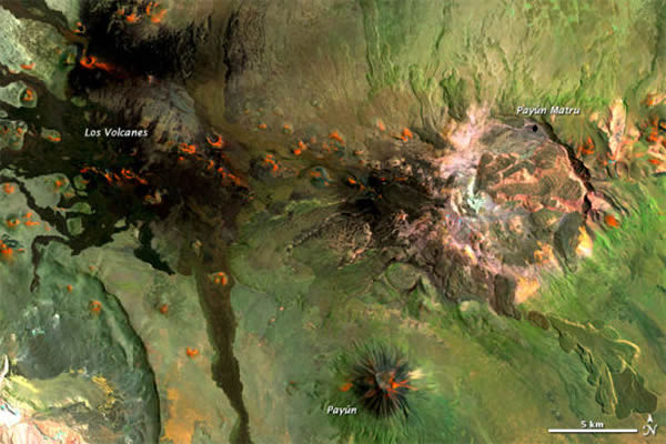 美国国家航空航天局地球观测站公布了一张卫星照片,展示了南美洲阿根廷Payún火山原(Payún Volcanic Field)的景象。