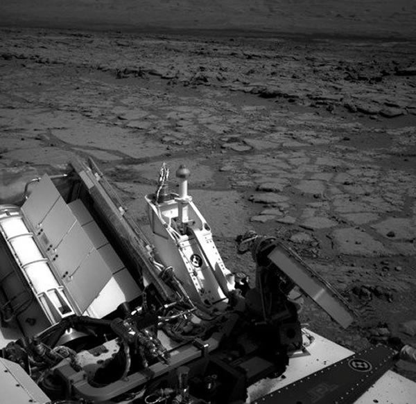 美国宇航局的好奇号火星车目前正在火星南部的盖尔撞击坑进行探索,通过携带的数台行星化学分析仪器对火星岩石进行成分研究,本张图像显示的是美国宇航局在12月12日公布的好奇号状态,处于耶洛奈夫湾(Yellowknife Bay)的腹地,这里是火星上地势较低的地区,从图像的上方可以看出,低洼处低于先前好奇行驶的地势大约半米左右,对火星表面的探索已经进行到第125个火星日。