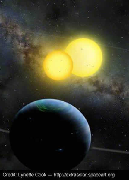 在另一个双星系统中,两颗行星环绕一对恒星运行,这是首次多颗行星位于双恒星系统。Kepler-47恒星距离地球5000光年,一颗恒星非常类似太阳,另一颗比太阳体积小,更昏暗,两颗恒星彼此环绕,公转周期为7.5天。