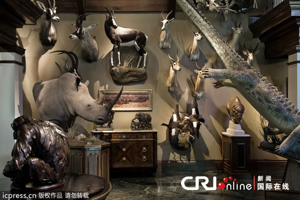 美国猎场看守人在家中陈列150头动物尸体 来源: 神秘的地球 时间:2013年1月05日 10:28 美国猎场看守人在家中陈列150头动物尸体 美国猎场看守人在家中陈列150头动物尸体 很多人喜欢在家里养动物,但一般人不会如此狂热。美国一名叫Bob的猎场看守人在自家楼下陈列了150头大型哺乳动物的尸体,仿佛一个小型动物园。他让动物剥制师把兽皮小心处理后包裹在塑料模型外面,然后再缝起来,甚至还给它们的脸化妆,使其尽量逼真,看上去跟活着的时候一样。为防止吓到别人,他把这些收藏集中陈列在两个房间里,而他在宾州的这栋别墅总共有22个房间。 David Aschkenas/东方IC 上一篇 下一篇 TAG: 动物 美国