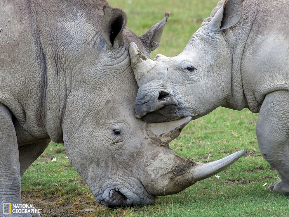 肯尼亚纳库鲁湖国家公园一对犀牛