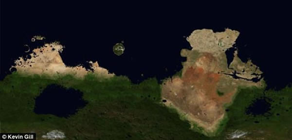 火星呈现出类似地球的绿色星球:美国新罕布什尔州软件工程师基于美国宇航局获得的真实火星地形结构,经图像处理将火星呈现出类似地球的模样
