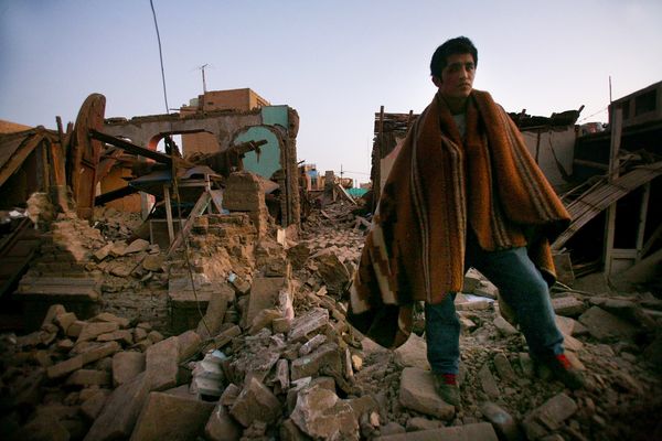 Gabriel Zegarra observes the aftermath of a magnitude 8 earthquake that hit the town of Pisco, Peru on August 16, 2007.