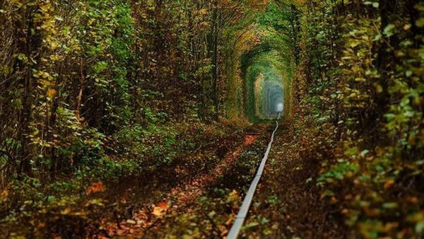 这个浪漫的通道因为新婚夫妇而在乌克兰轰动一时,每年春天树木的生长遮盖住铁路线时就会形成一个自然的拱道。
