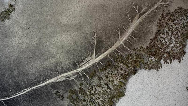 从一架直升机上拍摄到的澳大利亚昆士兰附近一条河流的抽象照。