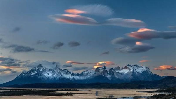 拍摄于智利百内国家公园的这一场景并不是外星人入侵。事实上,这些完全是自然形成的完美荚状云。