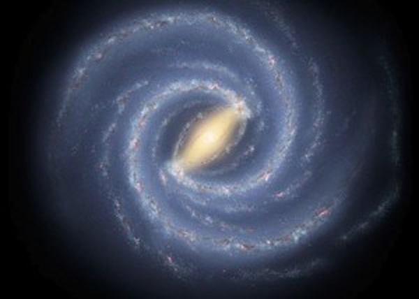 天文学家认为的银河系全部旋臂结构的艺术家印象图。