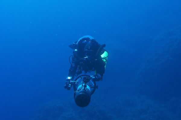 在公元前1世纪的一场著名的罗马海难中,或许有两艘船只沉没在希腊安蒂基西拉岛附近的海域。照片中的科学家潜水员正在探索位于克里特岛和伯罗奔尼撒岛之间的海峡失事地点。