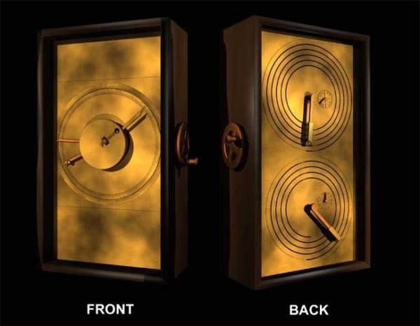 计算机模拟重建了安蒂基西拉机械装置的正面和背面。