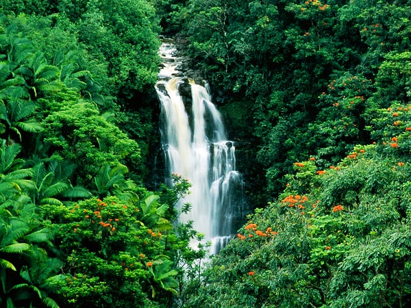 The rock-climbing fish lives in Nanue Falls on Hawaii's Hamakua Coast (pictured).