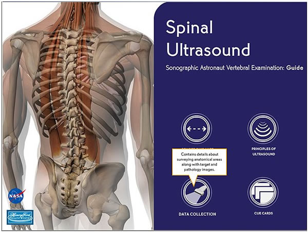 “目前在国际空间站上有一种新型超声波设备能够实现评估复杂的解剖学和脊柱时所需的精确肌肉骨骼成像。”这项研究的主要研究者斯科特·德尔查乌斯基(Scott Dulchavsky)这样说道。“新研发的即时脊髓超声训练向导,结合船员培训和远程指导程序,使得未来几年内能够对宇航员进行这些复杂的评估。”