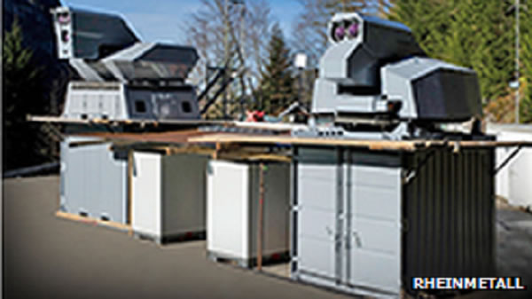 德国莱茵金属防务公司计划将它的激光武器安装到各种车辆上进行测试,并且在上面组装一个35毫米口径的转轮式火炮。许多政府和防务公司都在研制使用激光或者合并激光的武器系统。比如说,2010年雷声公司在法保罗夫航空展上就公布了一种50千瓦的防空激光武器。