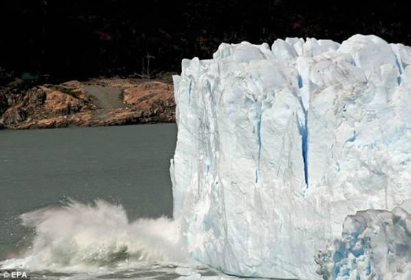 阿根廷南部巴塔哥尼亚一条冰川发生断裂,巨大的冰块脱离冰川。类似这样的很多冰川断裂据信由全球升温导致