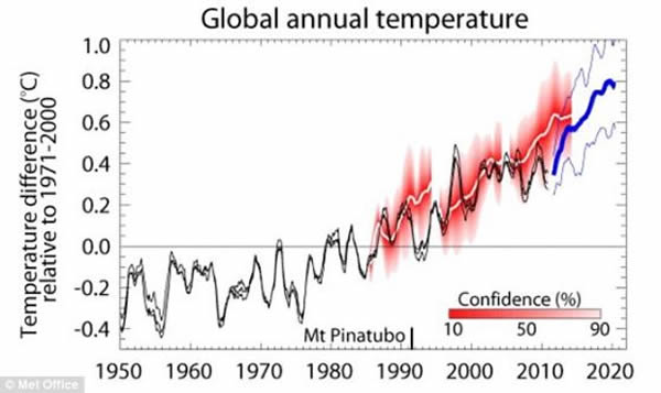 英国气象局的早期预测,认为全球气温将大幅提高,一直持续到2016年