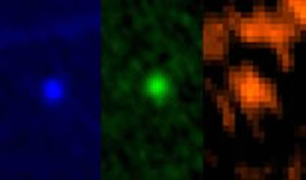 The asteroid Apophis, pictured here in three colors, will whiz by Earth later today. Image courtesy B. Altieri and C. Kiss, ESA/MPE/Konkoly