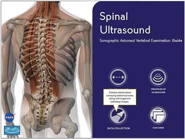 美国宇航局的Scott A. Dulchavsky博士表示,这是首次通过脊柱超声来实时观察宇航员脊柱的变化。在空间站上采用这种新的超声设备,能更精确地拍摄和评估复杂的解剖学所需的影像。利用这种新的超声仪器,同时结合宇航员培训及远程指导程序,能通过脊柱的超声影像来帮助宇航员了解这些变化。