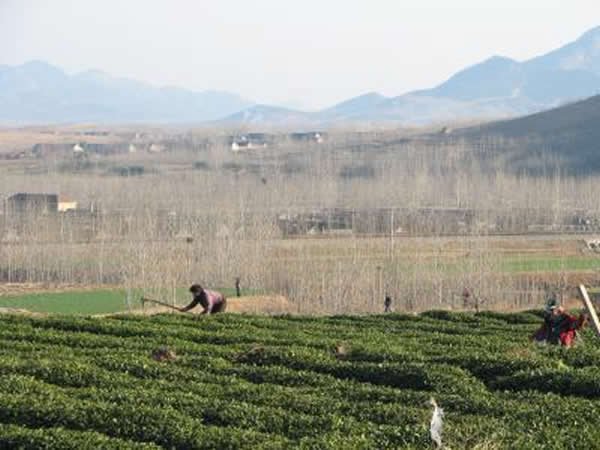 科学家走过山东东南部的茶园,这是一项创新的聚落形态区域调查的一部分,它发现了关于中国的这个区域如何发展的重要新证据。该照片摄于2006年,该研究组迄今已经完成了13年的调查,这让它成为了中美两国科学家之间持续时间最长的合作之一。在照片右边,芝加哥自然历史博物馆的人类学客座研究员Linda Nicholas拿着一幅地图,她在上面标出了调查中发现的史前和青铜器时代早期碎片的分布。