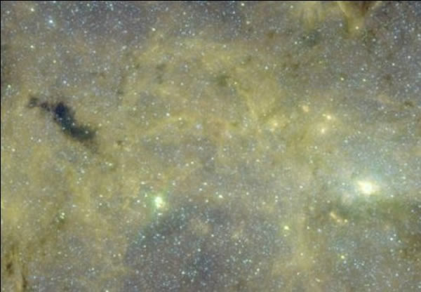 左边黑色区域为神秘“浮云”位置,右边亮点为银河系中央附近区域